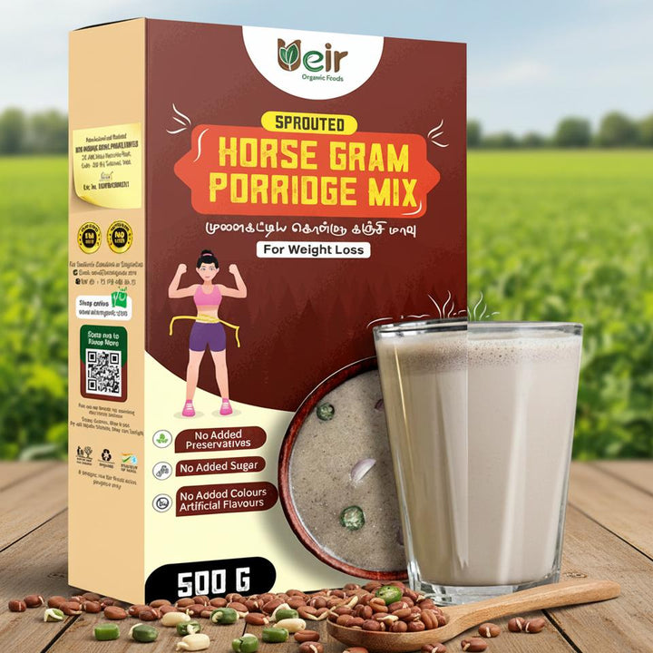 Add 2β3 tablespoons of Ueir Organic Sprouted Horse Gram Mix to warm water or milk. Stir well and enjoy as a nutritious morning or evening drink.